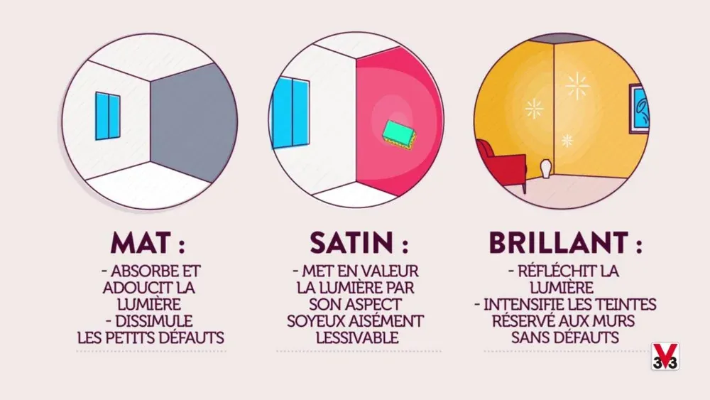 - Peinture brillante : recommandée pour les salles de bains et les cuisines.